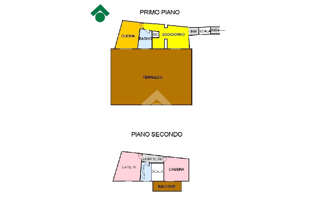 L'immobile si sviluppa su 2 livelli di cui uno al primo piano dove troviamo un ingresso, un salotto, una cucina abitabile, un bagno ed una terrazza di circa 100 mq. mentre al livello superiore troviamo un disimpegno con armadio a muro, 2 camere da letto, un bagno ed un balcone.