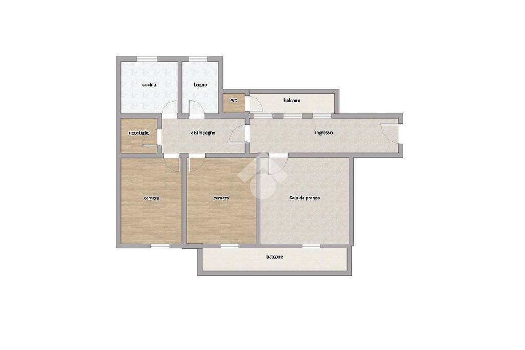 L'appartamento, da ristrutturare, offre una disposizione degli ambienti funzionale e personalizzabile. L'ingresso si apre su un ampio ingresso che conduce al soggiorno con accesso diretto a un balcone. Sul lato opposto, un secondo balcone che garantisce luminosità e aerazione all'ambiente.